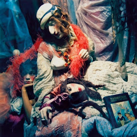 Unlike the majority of his contemporary art photographers in the late fifties Jack Smith concentrated on experiments with color photography, at least for a few years. I’m not sure where he got the money for it, seeing as it was a pretty expensive process; perhaps not as costly as it had been a few years before he took it up, but still…..I can only assume he had a few wealthy admirers willing to foot the bills. (Of course it’s true he hardly ever spent any money on food. His skills in table diving have been held up for my admiration by more than one of his old friends.) Here you see a few of the fruits of this great collective effort that he managed to sustain for a few years. Among the collaborators one might recognize from previous exposure are the film maker, Ken Jacobs, and Jack’s co-star from Star Spangled to Death, Jerry Sims. Reese Haire, who appeared with them in Scotch Tape makes a few appearances here; as well as Jack, Dr. Madman himself.